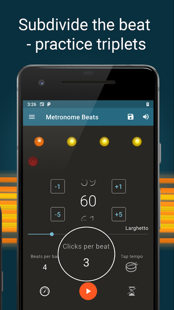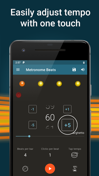 Metronome Beats es una aplicación gratuita para Android que pertenece a la categoría Música y Audio, y ha sido desarrollada por Stonekick. Está recomendada para músicos, principiantes, amantes de la música, bateristas, corredores, profesores, estudiantes...